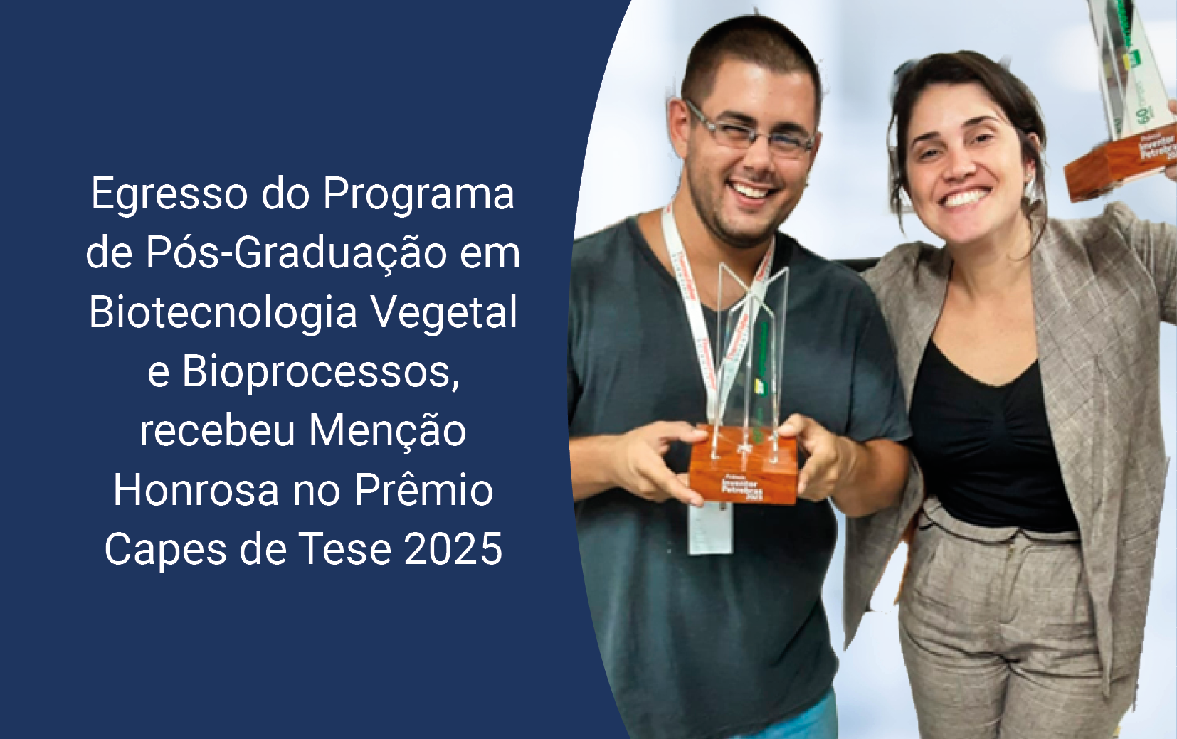 Egresso do Programa de Pós-Graduação em Biotecnologia Vegetal e Bioprocessos, recebeu Menção Honrosa no Prêmio Capes de Tese 2025 Leia mais » 2 de setembro de 2025